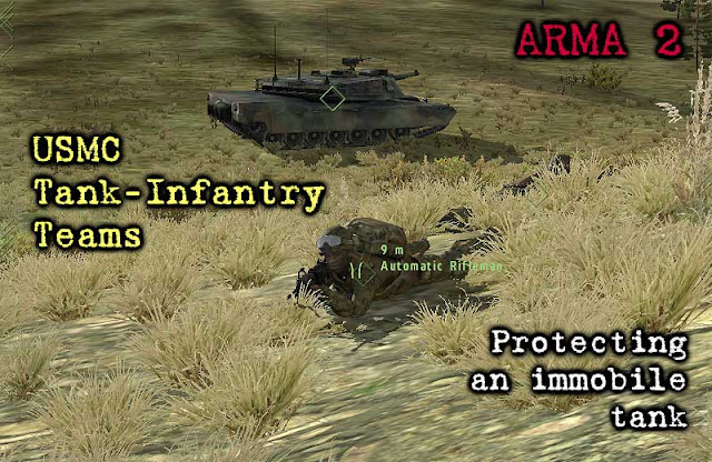 This is a continuation from Part 1. A stationary tank has to be protected from close assault with RPGs or other AT portable weapons. In this entry, the USMC rifle squad deploys for its mission.