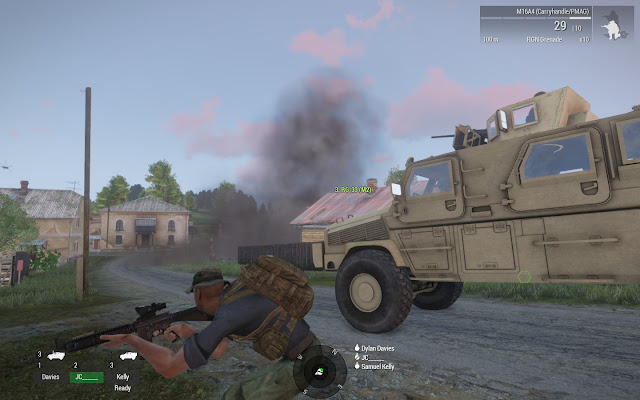| While inside buildings, the non-shared targets and fields of fire of the dismount and the vehicle were a problem that is common among any vehicle-infantry teams. |